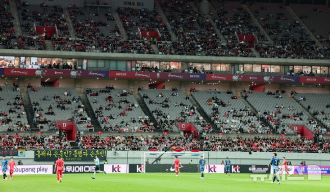 낯설 수밖에 없는 이날 관중석 풍경과 마주한 축구대표팀 주장 손흥민은 "추석 연휴 동안 오래 쉬시다가 갑자기 일상으로 복귀하게 되면서, 팬분들이 각자의 일상에 더 신경 쓰신 거 같다"면서도 "저희가 물론 책임감을 가지고 경기장에서 잘해야 한다. 재미있는 축구를 하고 좋은 축구, 멋진 축구를 하면 분명히 다시 경기장에 오실 거라고 생각한다"고 말했다. 홍명보 감독은 "경기장에 빈 좌석이 많이 보이긴 했지만, 팀이 정말로 어려웠는데 선수들을 믿고 찾아와 주신 팬 여러분께 감사드린다. 큰 힘이 됐다"고 했다.