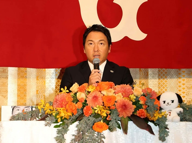 이승엽(49) 전 두산 베어스 감독의 절친으로 국내 야구팬들에게 잘 알려진 요미우리 자이언츠 외야수 초노 히사요시(41)가 웃으며 현역 은퇴를 선언했다. 인품이 좋기로 유명한 만큼 요미우리 동료들을 비롯해 스태프 등 53명이 초노의 은퇴를 축하하기 위해 나섰다.