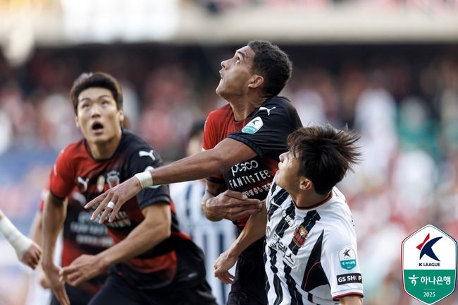 포항은 종료 직전까지도 골을 노렸다. 추가시간 주닝요의 중거리 슈팅이 골대를 강타하며 경기장은 한순간 숨을 죽였다. 하지만 공은 끝내 라인을 넘지 않았다.