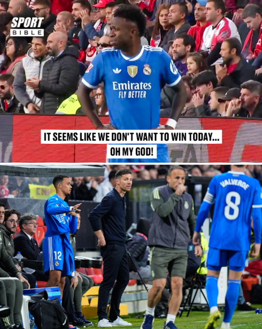스포츠 바이블에 따르면 현지 카메라에 잡힌 그의 목소리는 이러했다. 비니시우스는 "오늘은 우리가 이기고 싶지 않은 것 같네… 오 마이 갓(It seems like we don't want to win today... Oh my God)"이라고 말했다. 그의 입모양은 통역을 통해 방송에서 그대로 번역됐다.