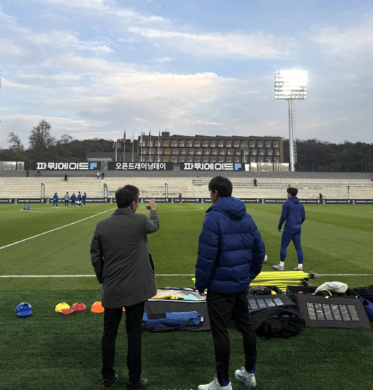 [OSEN=노진주 기자] 정몽규 대한축구협회(KFA) 회장이 '새 둥지' 대한민국축구종합센터에서 대표 선수들이 훈련하는 모습을 본 뒤 "새로운 도약의 출발점이 될 것"이라며 응원의 메시지를 남겼다.