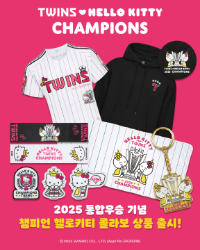 이번 기념 상품은 12일 오후 3시부터 트윈스 어패럴샵을 통해 통합 우승 바시티 점퍼, 스타디움 래더 점퍼, 반집업 바람막이, 후드티(3종), 티셔츠(2종), 유니폼(2종) 등을 출시하고, 챔피언 헬로키티 유니폼, 후드티 등 콜라보 상품은 콜랩샵을 통해 만날 수 있다.