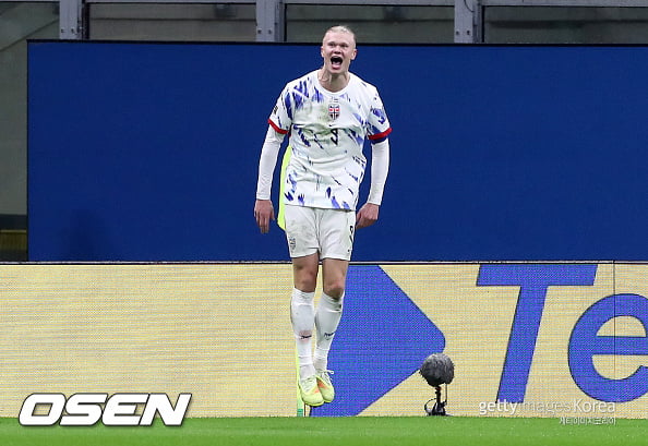 홀란은 A매치 48경기서 55골이라는 비현실적인 수치를 생산하고 있다. 경기당 1.15골이다. 한국최고 손흥민이 140경기서 54골을 넣었다는 사실과 비교하면 더욱 놀랍다. 손흥민은 경기당 0.39골을 넣고 있다.