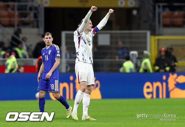 노르웨이는 17일(한국시간) 이탈리아 밀라노의 스타디움 주세페 메아차에서 열린 2026 국제축구연맹(FIFA) 북중미 월드컵 유럽 예선 I조 8차전 원정 경기에서 이탈리아를 4-1로 승리했다.
