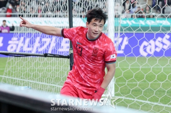 지난해 11월 쿠웨이트와 2026 북중미 월드컵 아시아 3차 예선 원정 A매치 데뷔 이후 13경기 만에 나온 이태석의 데뷔골이다.