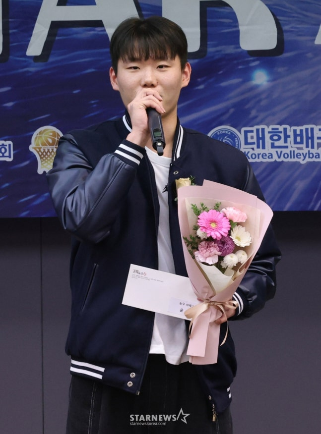 농구 부문 미래스타상 수상자 윤지원(경복고2·192cm)이 당찬 소감을 전했다. 한 학년 차이지만 프로에서 뛰는 선수들과 함께 '2025 퓨처스 스타대상'에 부름을 받아 영광스럽다고 이야기했다.