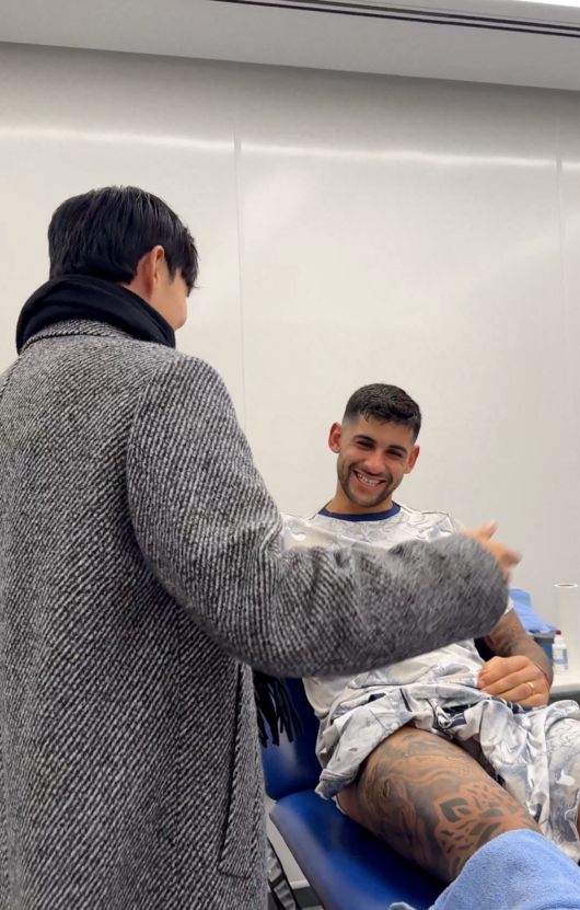 이후 손흥민은 회색 롱코트에 검은 목도리를 두르고 경기장에 나타났다. 토트넘 팬들은 기립 박수와 뜨거운 환호로 그를 맞이했다. 부상으로 재활 중인 제임스 매디슨과 굴리엘모 비카리오 등 옛 동료들도 손흥민과 포옹하며 약 4개월 만의 재회를 나눴다.