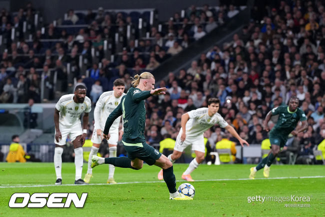전반 막판에는 수비 집중력이 무너졌다. 전반 40분경 문전 크로스 상황에서 안토니오 뤼디거와 엘링 홀란이 뒤엉켰고, 처음엔 흐름이 이어지다 비디오 판독(VAR) 끝에 레알의 파울이 선언됐다. 키커로 나선 홀란은 전반 43분 침착하게 오른발로 골문 오른쪽 구석을 찌르며 역전에 성공했다.