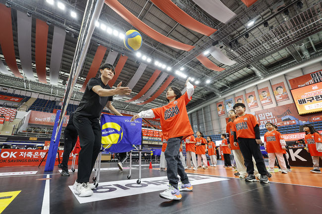 이날 행사에는 부산 지역뿐만 아니라 김해, 양산 등 경남권 전반에서 총 100명의 초등학교 3, 4학년 어린이들이 참여해 의미를 더했다. 참가 학생들은 OK 읏맨 배구단 유소년 배구교실 코치진의 지도 아래 리시브, 토스 등 기본기 중심의 맞춤형 교육을 받았다. 뿐만 아니라 OK 읏맨 배구단 소속 김건우, 마유민, 강선규 등 선수단도 직접 교육에 참여해 현장의 열기를 끌어올렸다.