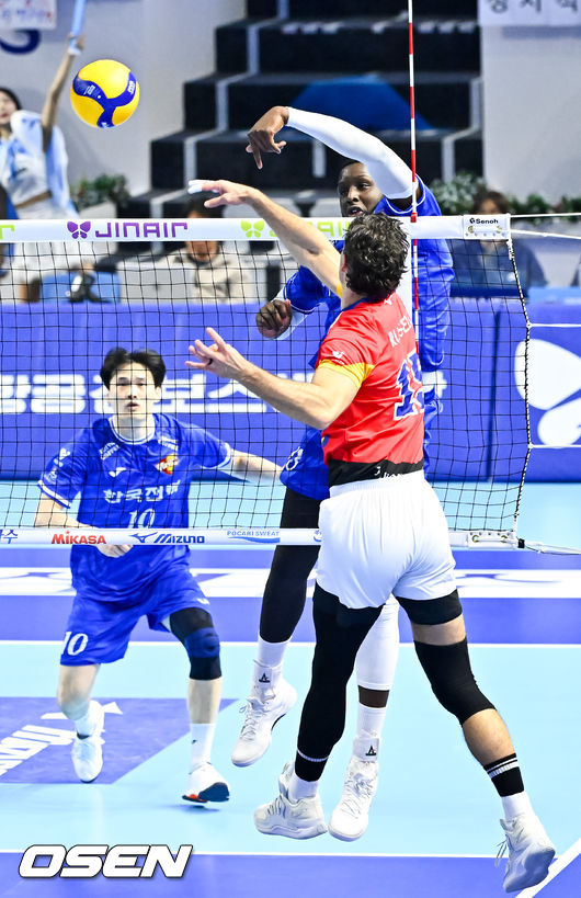 [OSEN=계양(인천), 박준형 기자] 19일 오후 인천 계양체육관에서 진에어 2025-2026 V리그 남자부 대한항공과 한국전력의 경기가 진행됐다.