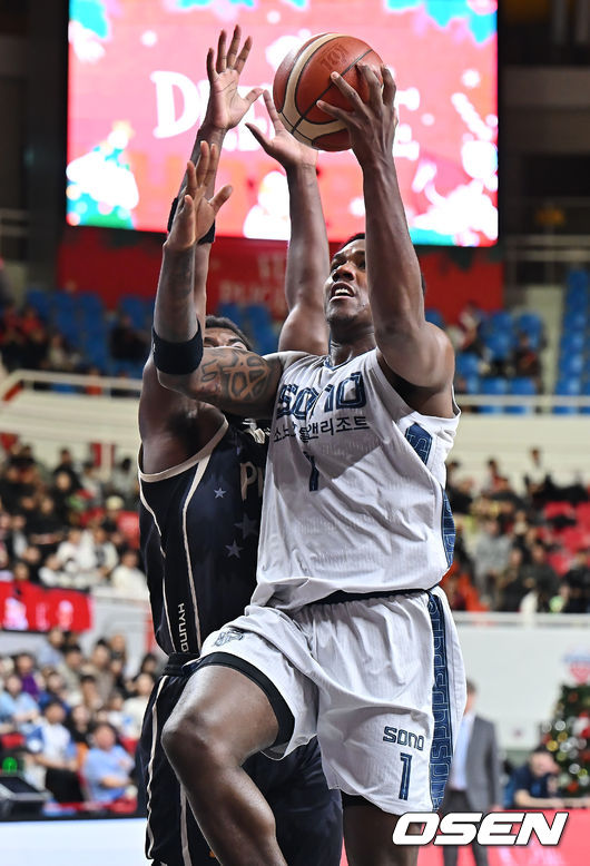 고양 소노 네이던 나이트가 울산 현대모비스 존 이그부누의 마크를 피해 골밑슛을 시도하고 있다. 2025.12.25 / [email protected]
