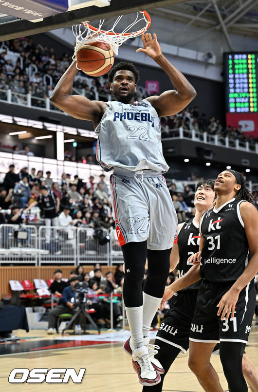 기세가 오른 KT는 외국인 선수 아이재아 힉스도 득점에 가세했다. 골밑 득점을 올리며 KT가 리드를 이어갔다. 결국 KT는 현대모비스의 추격을 따돌리고 승리, 연패 탈출에 성공했다. / [email protected]