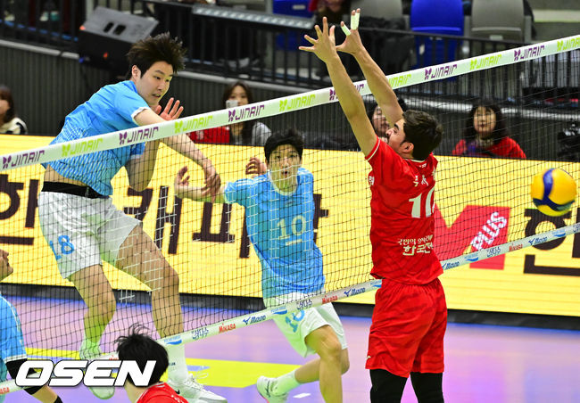 [OSEN=수원, 박준형 기자] 20일 오후 수원실내체육관에서 진에어 2025-2026 V리그 남자부 한국전력과 대한항공의 경기가 진행됐다.