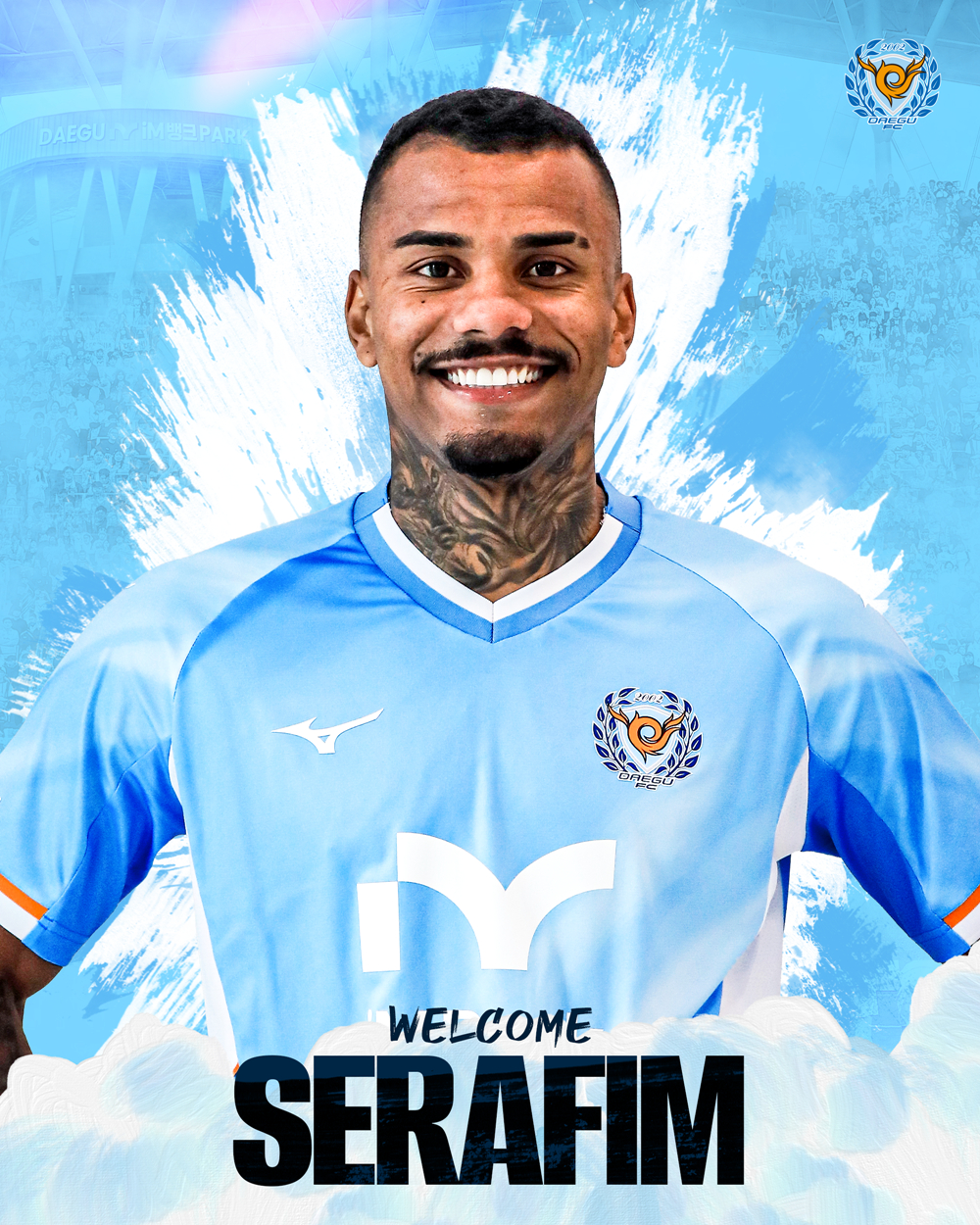 1998년생인 세라핌은 브라질 상 조제 EC와 아마조나스 EC를 거치며 성장했고, 2025년 수원삼성으로 임대 이적해 K리그에 도전했다. 첫 시즌부터 37경기 13득점 4도움의 활약으로 팀 내 최다 득점을 기록하며 강한 인상을 남겼다. 뜨거운 활약으로 팬들의 주목을 받은 그는 새로운 무대 대구FC에서 득점 본능을 이어가며 팀 공격 완성도를 한층 끌어올릴 전망이다.