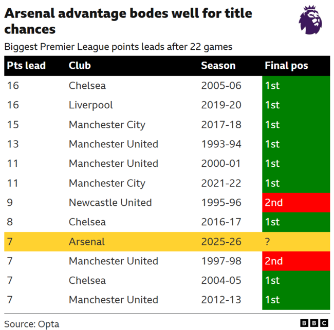 그럼에도 전체 전례를 놓고 보면 희망의 근거는 분명하다. BBC에 따르면 프리미어리그에서 이 시점에 최소 4점 차 선두였던 사례는 총 20차례. 그중 16번은 실제 우승으로 이어졌다. 실패는 소수였다. 1995-1996시즌 12점 차를 날린 뉴캐슬, 1997-1998시즌 5점 차를 지키지 못한 맨유, 그리고 2018-2019시즌 무패 행진에도 불구하고 맨시티에 밀린 리버풀 정도다.