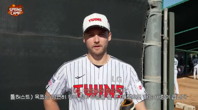 톨허스트는 LG팬들에게 “LG에 다시 돌아와서 너무 기쁘다. 빨리 팬들을 만나보고 싶은 마음이 크다. 목표는 당연히 우리 팀이 한국시리즈 우승을 백투백으로 한 번 더 했으면 하는 바람이 크다”고 말했다.
