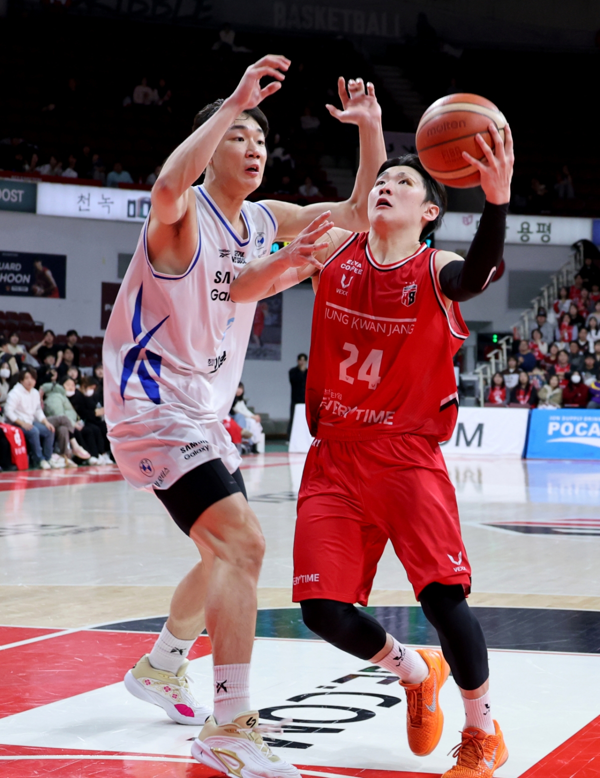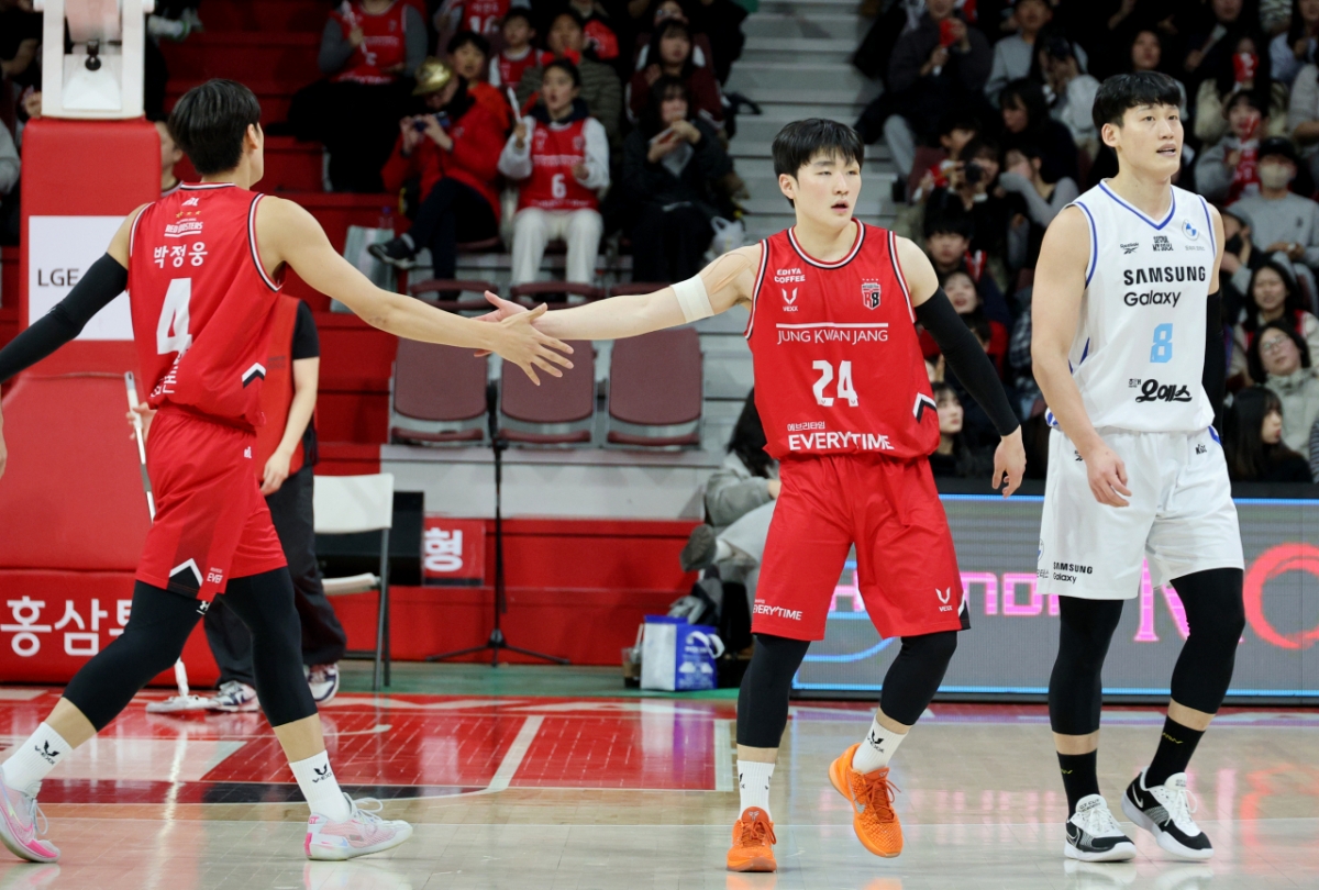 6점차로 앞서는 삼성. 문유현의 슛이 성공했다면 50여초를 남겨둔 상황에서 4점차로 추격하는 정관장이었겠지만 이원석의 활약으로 점수는 유지됐고 역전은 물건너갔다. 2026.01.29.