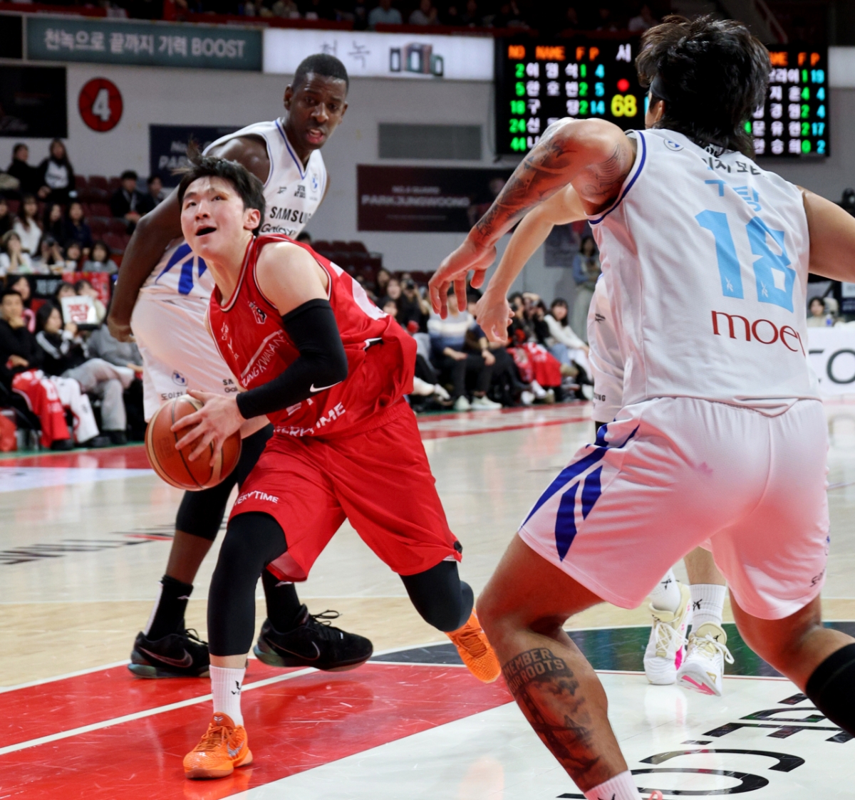 2점슛보다는 3점슛이 필요한 순간이었지만 문유현은 과감한 돌파를 선택했다.