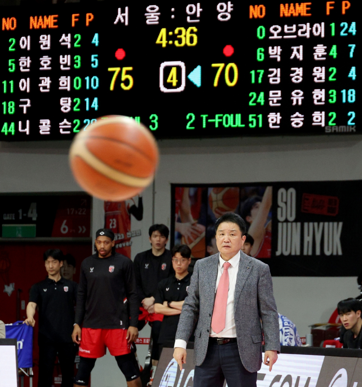 농구대표팀 마줄스 감독이 29일 안양체육관에서 열린 2025-2026 LG전자 프로농구 정관장과 삼성의 경기를 관전하고 있다. 2026.01.29.