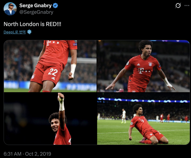 토트넘이 그나브리를 타깃으로 삼은 것은 아이러니다. 지난 2019년 바이에른 뮌헨 소속으로 7-2로 대승을 거둔 토트넘전에서 4골을 몰아쳤던 그는 경기 직후 자신의 소셜 미디어(SNS)에 "북런던은 빨간색"이라는 문구를 올렸다. 토트넘 상징색은 흰색이다.