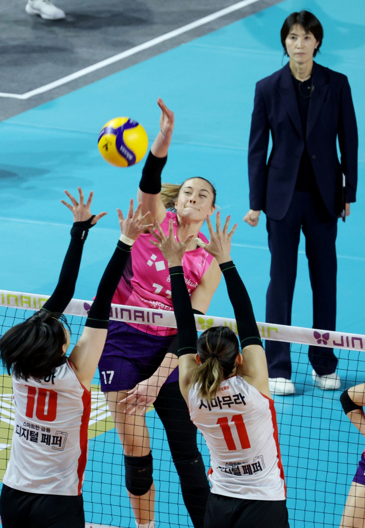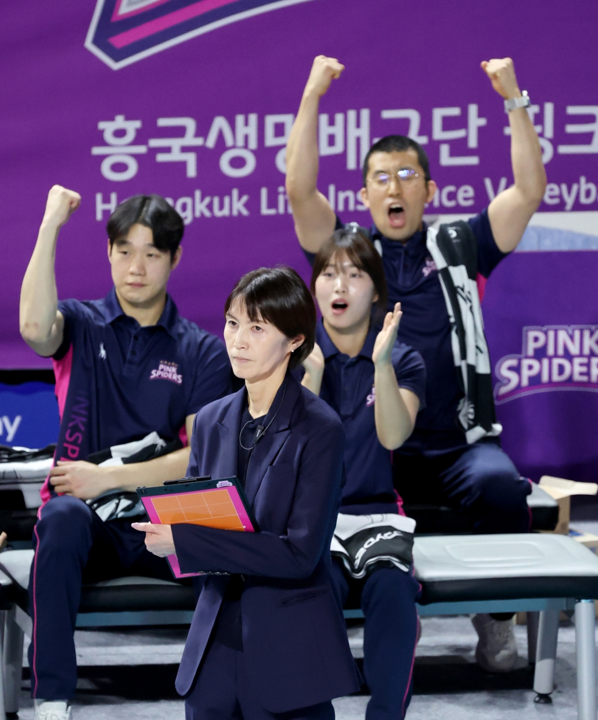 흥국 요시하라 토모코 감독이 1일 삼산월드체육관에서 열린 2025-2026 진에서 V리그 흥국생명과 페퍼저축은행경기에서 선수들을 독려하고 있다. 2026.02.01.