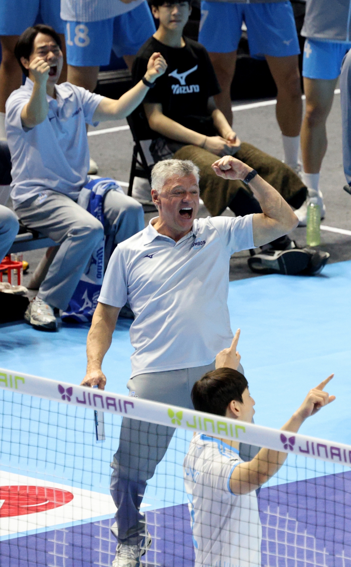 대한항공 헤난 감독이 7일 계양체육관에서 열린 2025-2026 진에어 V리그 남자부 대한항공과 한국전력의 경기에서 득점에 환호하고 있다. 2026.02.07.