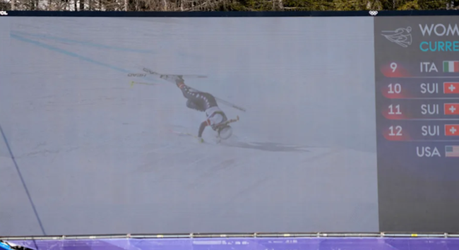 활강 종목 36명의 출전자 중 13번째로 출발한 본은 출발 직후 오른쪽 어깨로 게이트를 스쳤다. 단 한 번의 접촉이었다. 그 순간 그의 몸은 점프 구간에서 균형을 잃었고, 스키 위에서 허공으로 던져졌다. 회전하며 떨어지는 그의 모습이 결승선 대형 스크린에 잡혔고, 관중석은 숨을 삼켰다.