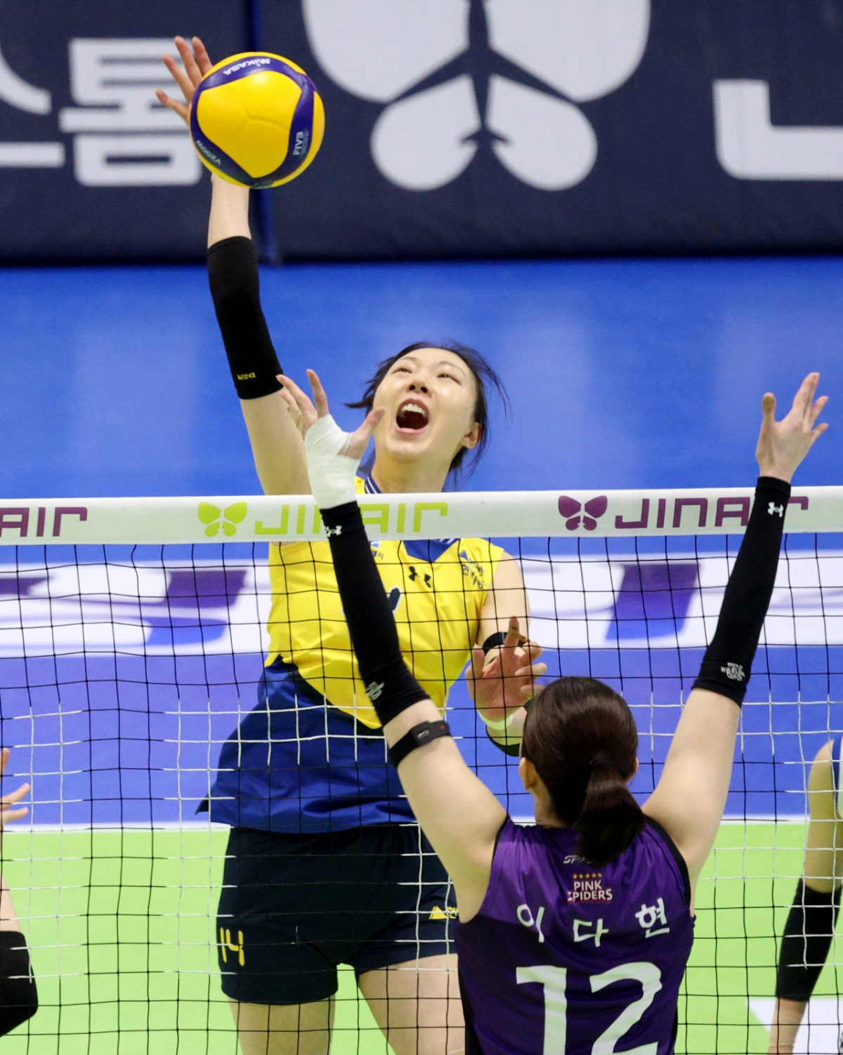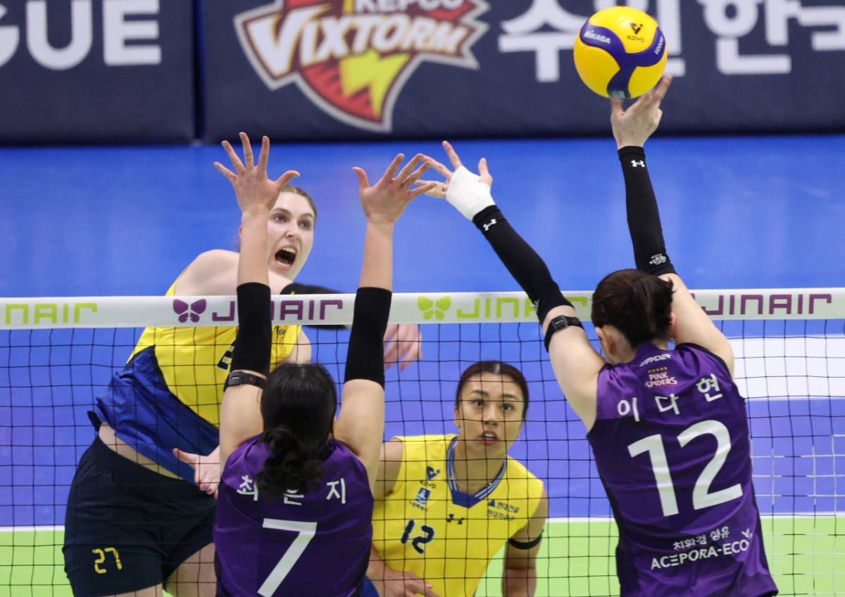 양효진은 고비 때마다 블로킹을 잡아내며 분위기를 끌어올렸다.