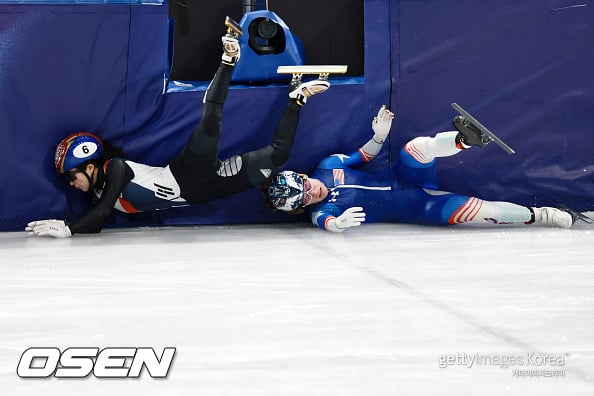 이게 다 미국 때문이다. 준결승 경기중반 미국의 원인으로 불의의 사고가 터졌다. 한국이 3위를 달리던 레이스 중 선두의 미국선수 코린 스토다드가 갑자기 넘어지면서 김길리까지 치는 충돌사고가 발생했다. 김길리는 가슴에 큰 충격을 받고 펜스에 부딪치며 넘어졌다.