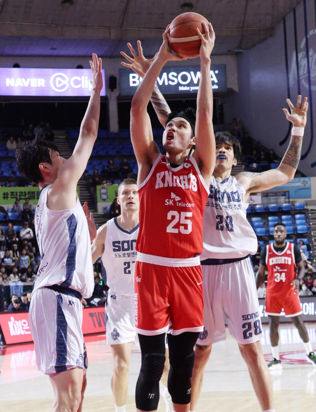 2025-2026 KBL 프로농구 서울 SK와 고양 소노의 경기가 11일 서울 잠실학생체육관에서 열렸다. 2025-2026 KBL 프로농구 서울 SK 대 고양 소노 경기가 11일 서울 잠실학생체육관에서 열렸다. SK 톨렌티노가 소노 최승욱과 켐바오를 제치고 골밑슛을 시도하고 있다. 독자들의 PICK! 100만원도 못 벌던 개그맨..."수입 1000배" 변호사 된 깜짝 근황 "제수씨와 잠자리를?" 초강수 질문…'친자확인' 남편, 끝내 결백 입증 "조진웅, 은퇴할 줄 몰랐다…식사 제안도 거절" 정지영 감독이 전한 근황 치어리더 정가예 "폭언·욕설에 병원 치료→활동 중단" 무슨 일?