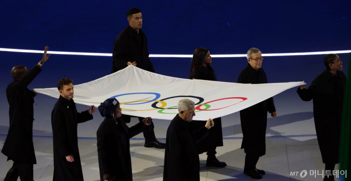 ![[밀라노=뉴시스] 박주성 기자 = 6일 (현지시간)이탈리아 밀라노 산시로 스타디움에서 열린 2026 밀라노·코르티나담페초 동계올림픽 개막식에서 오륜기가 들어오고 있다. 2026.02.06. /사진=](https://thumb.mt.co.kr/cdn-cgi/image/f=avif/21/2026/02/2026021715492442774_1.jpg)