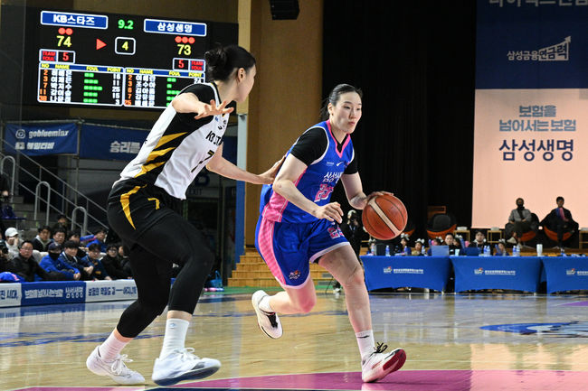 패배 직전까지 몰린 경기였다. KB는 무려 19개의 턴오버를 범했다. 전반에만 13개. 스스로 흐름을 끊으며 자멸 위기를 자초했다. 삼성생명은 박지수의 골밑을 봉쇄하기 위해 집요한 더블팀을 가동했고, 페인트존을 내주지 않겠다는 전략으로 재미를 봤다. 외곽을 일부 허용하더라도 골밑 파생 패스를 차단하겠다는 계산이었다.