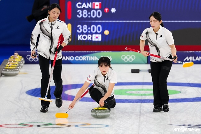 스킵 김은지, 서드 김민지, 세컨드 김수지, 리드 설예은, 핍스 설예지로 구성된 여자 컬링 대표팀 경기도청은 19일 오후 10시(한국시간) 이탈리아 코르티나담페초의 코르티나 컬링 올림픽 스타디움에서 열린 2026 밀라노·코르티나담페초 동계 올림픽 여자 컬링 라운드 로빈 9차전 캐나다와 경기에서 7-10으로 졌다.