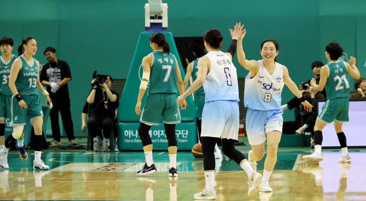 신한선수들이 20일 부천실내체육관에서 열린 BNK금융 2025-2026 WKBL 하나은행과 신한은행 경기에서 4쿼터 승기를 잡은 후 하이파이브를 나누고 있다. 신한선수들이 20일 부천실내체육관에서 열린 BNK금융 2025-2026 WKBL 하나은행과 신한은행 경기에서 4쿼터 승기를 잡은 후 하이파이브를 나누고 있다. 2026.02.20. 독자들의 PICK! 장윤정 모친 "두 번 이혼한 딸, 속상…연하 사위 원해" 딴 여자와 하의 벗고 음란통화...'자칭 일편단심' 남편 돌변 또 임신설...'용준형과 데이트' 현아 모습 어떻길래 "나 퇴사했어, 전업주부 할래"...'책임감 0' 남편 이혼하고 싶어요