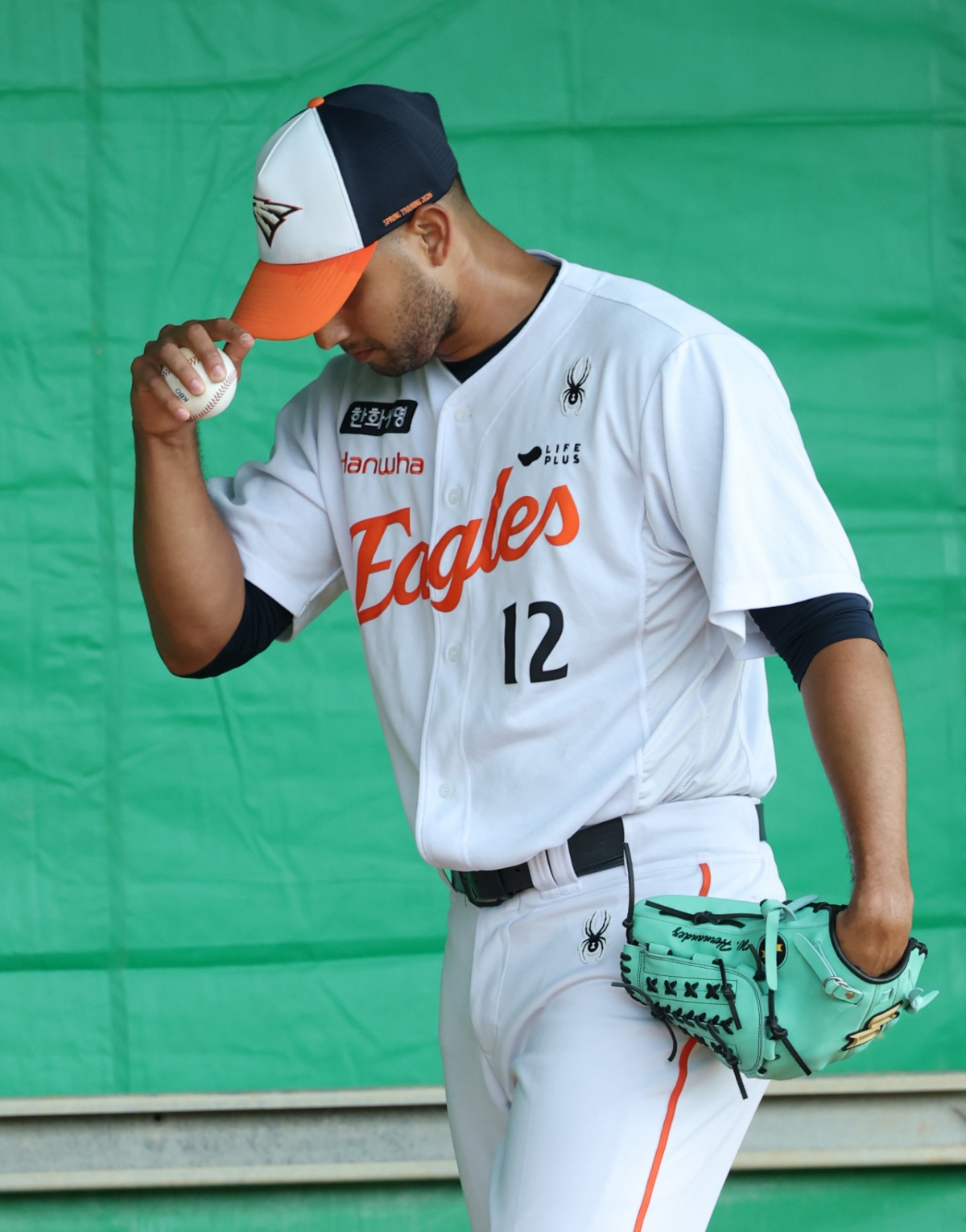 에르난데스가 불펜 피칭 훈련을 하고 있다.