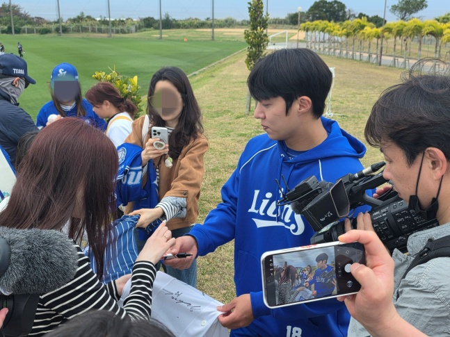 이날 삼성 대표팀이 훈련하는 오키나와 아카마 볼파크에는 개인 자격으로 응원하러 온 삼성 팬들로 인산인해를 이뤘다. 원태인은 그런 팬들에게 일일이 사인하며 푸른 피의 에이스로서 자신을 다시 한번 자각했다.