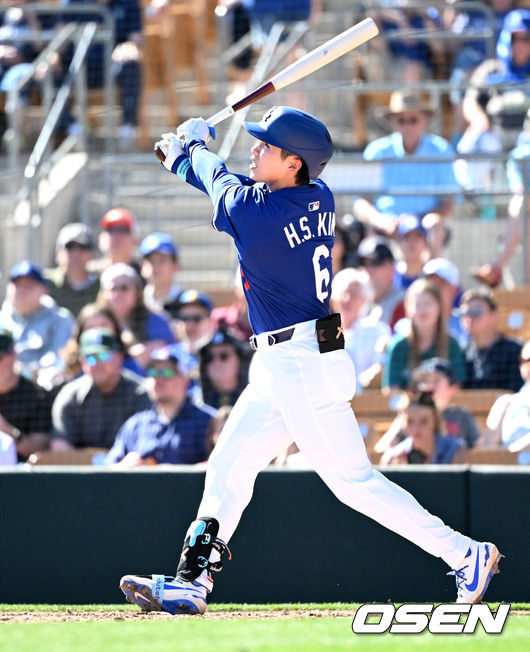 김혜성은 22일(이하 한국시간) 미국 애리조나주 템피 디아블로 스타디움에서 열린 2026 메이저리그 LA 에인절스와 첫 시범경기에 6번 2루수로 선발 출전해 3타수 2안타 3타점 1득점 맹활약하며 다저스의 15-2 대승을 이끌었다.