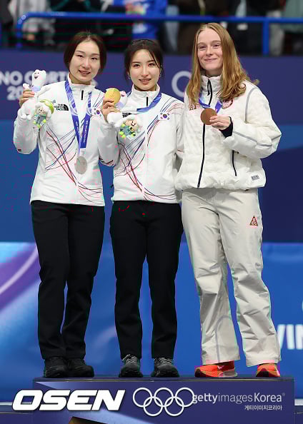 금메달을 목에 건 김길리는 동메달의 스토더드와 나란히 단상에 서서 앙금을 풀었다. 스토더드 역시 동메달로 올림픽에 대한 슬럼프를 탈출했다. / [email protected]