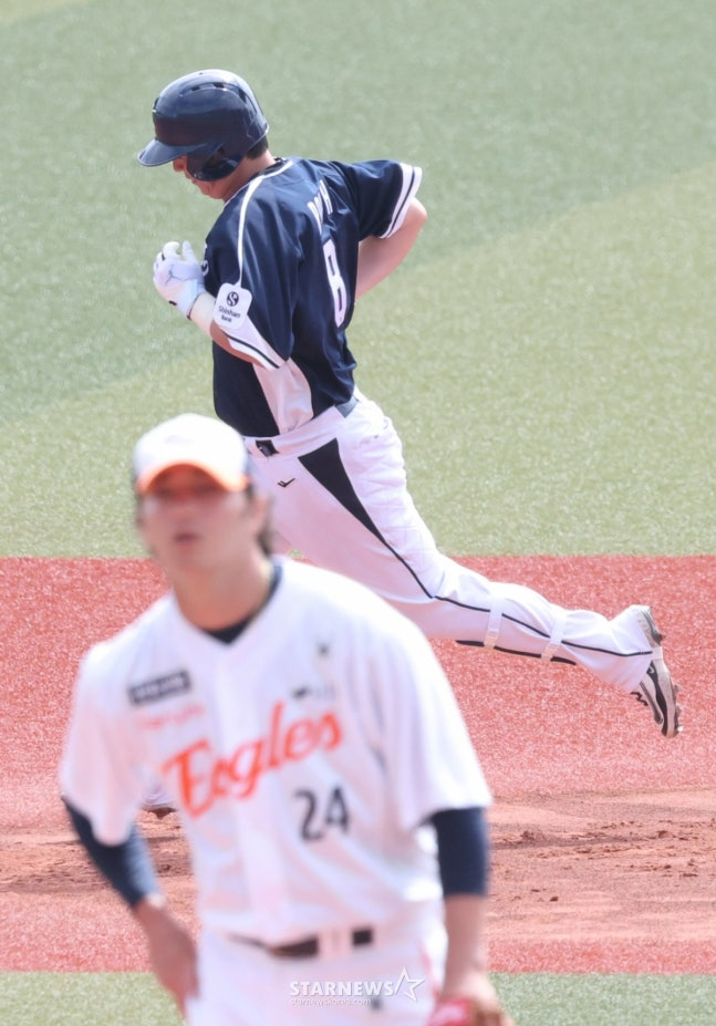 무사 만루 무득점의 아쉬움을 노시환이 단숨에 날렸다. 이날 오전 한화와 11년 307억 비FA 다년계약을 체결한 노시환은 2회 무사 1루 첫 타석부터 화이트의 공을 왼쪽 담장 밖으로 넘겼다. 대표팀의 2-0 리드.