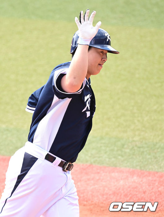 노시환은 계약 후 첫 타석부터 큼지막한 홈런을 쏘아올리며 모두의 기대에 부응하는 모습을 보여줬다. 대표팀은 노시환의 홈런에 힘입어 2회초까지 2-0으로 앞서나가고 있다. /[email protected]
