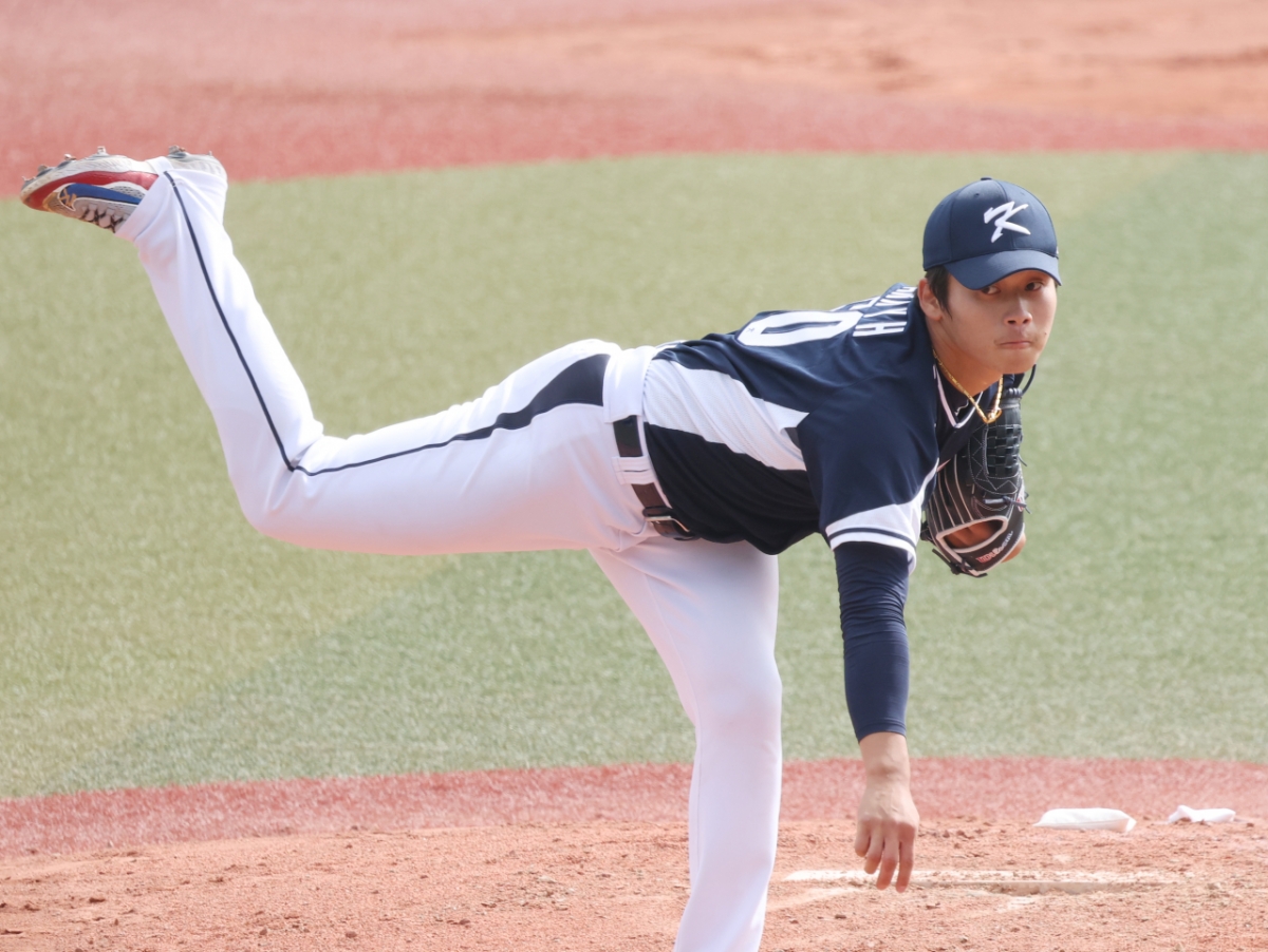 대표팀 박영현이 역투하고 있다.