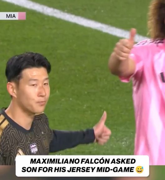 [OSEN=고성환 기자] 경기 도중에 미리 예약까지 한 보람이 있었다. 막시밀리아노 팔콘(29, 인터 마이애미)이 손흥민(34, LAFC)의 유니폼을 손에 넣는 데 성공했다.