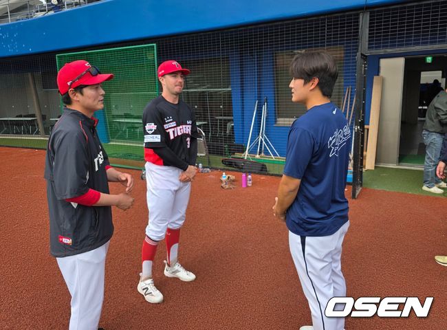 [OSEN=오키나와, 길준영 기자] 프로야구 KIA 타이거즈 아시아쿼터 외국인타자 제리드 데일(26)이 한국 야구 국가대표 김택연(21)에게 위험한 타구를 날린 것을 사과하기 위해 찾아와 훈훈한 장면을 만들었다.