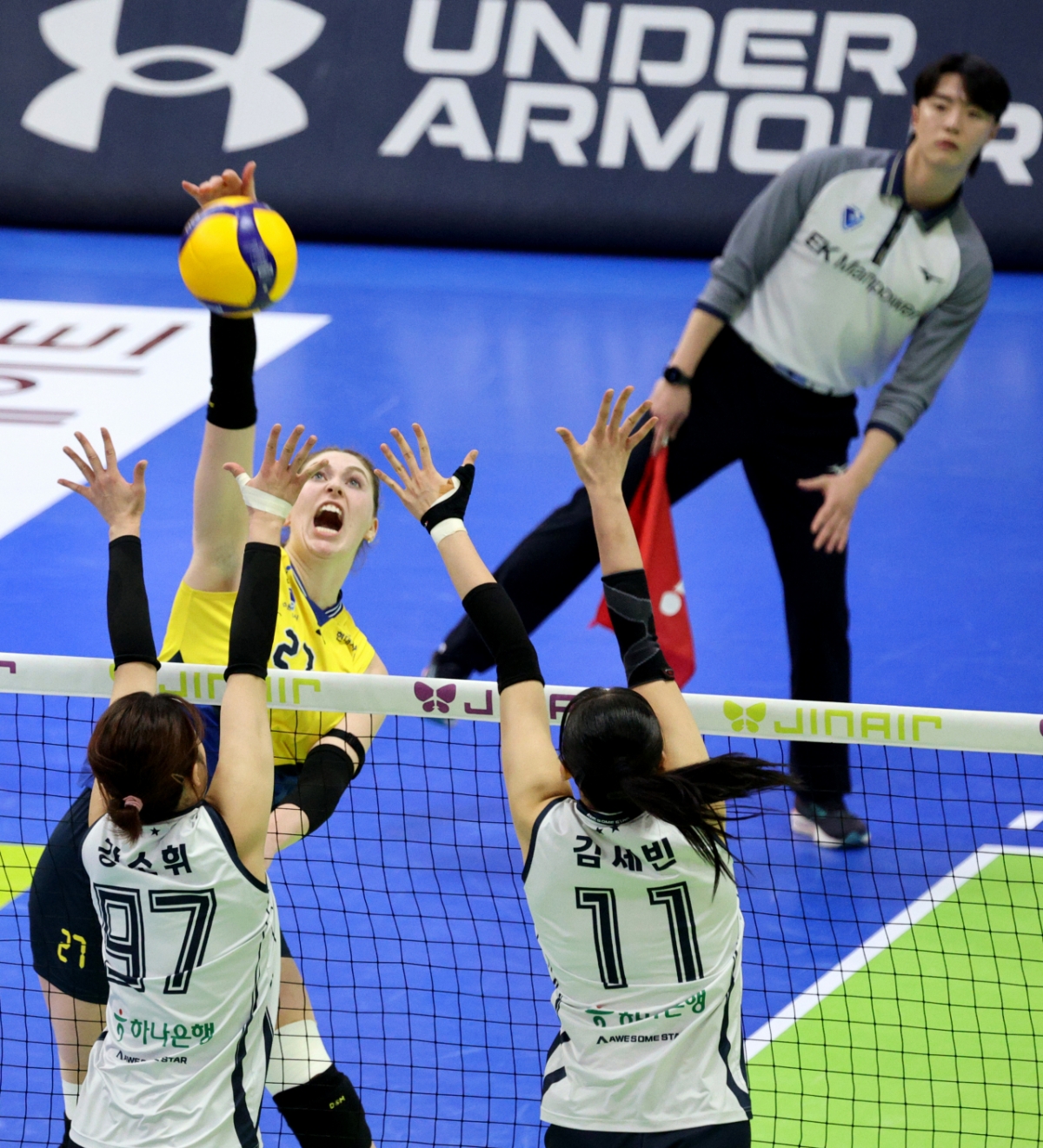현대 카리가 수원체육관에서 열린 현대건설과 한국도로공사 경기에서 도로공사의 이중블로킹을 뚫고 강타를 터트렸다. 현대 카리가 24일 수원체육관에서 열린 진에어 2025-2026V리그 여자부 현대건설과 한국도로공사 경기에서 도로공사 이중블로킹에 강타를 터트리고 있다. 2026.02.24. 독자들의 PICK! '무면허 음주·뺑소니' 여배우, 한국 떠났다…"단순 여행 아냐" 10대 두 딸 '매춘 조직'에 넘긴 아버지...성매매 강요당한 자매 "변태적 성관계 요구" 이혼 소송 건 아내…남편 "치 떨려" 분통 "아내 만족 시켜야, 아들 낳아" 원진서 발언에 윤정수 "부족했니?"