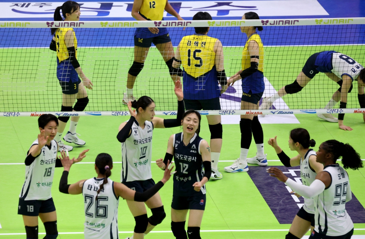 도로공사 선수들이 24일 수원체육관에서 열린 V리그 여자부 현대건설과의 경기에서 득점한 후 기뻐했다. 도로공사 선수들이 24일 수원체육관에서 열린 진에어 2025-2026V리그 여자부 현대건설과 한국도로공사 경기에서 득점한 후 자축하고 있다.. 2026.02.24. 독자들의 PICK! '무면허 음주·뺑소니' 여배우, 한국 떠났다…"단순 여행 아냐" 10대 두 딸 '매춘 조직'에 넘긴 아버지...성매매 강요당한 자매 "변태적 성관계 요구" 이혼 소송 건 아내…남편 "치 떨려" 분통 "아내 만족 시켜야, 아들 낳아" 원진서 발언에 윤정수 "부족했니?"