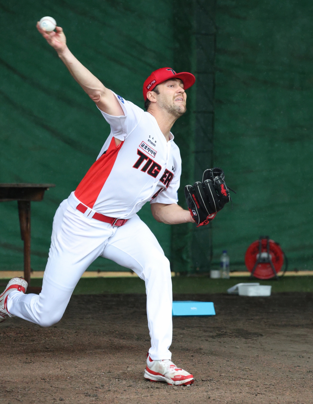 네일이 불펜 피칭을 하고 있다.