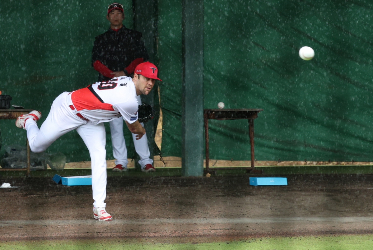 네일이 KIA 타이거즈의 오키나와 스프링캠프에서 불펜 피칭을 진행했다.