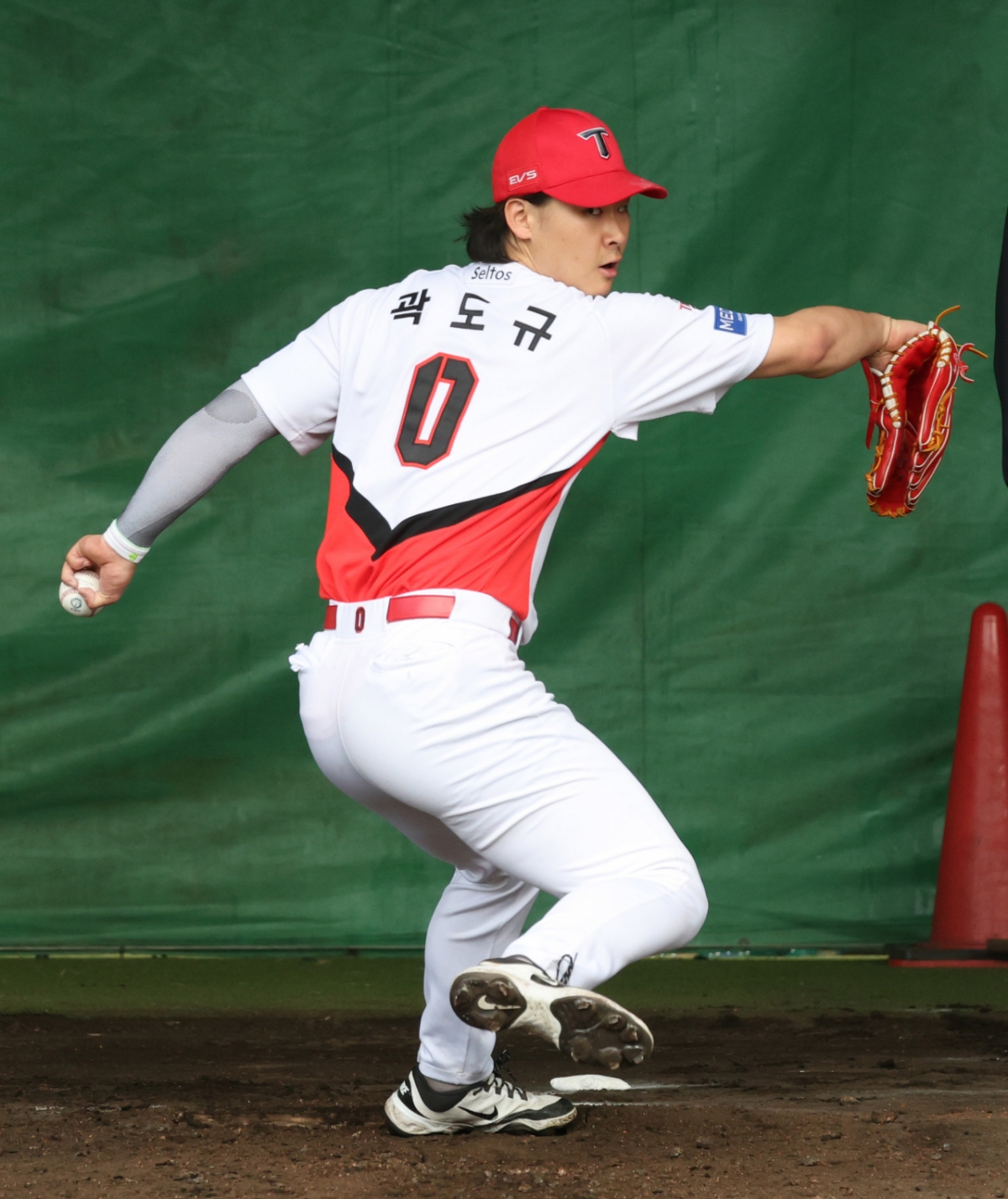 곽도규가 불펜 피칭을 하고 있다.