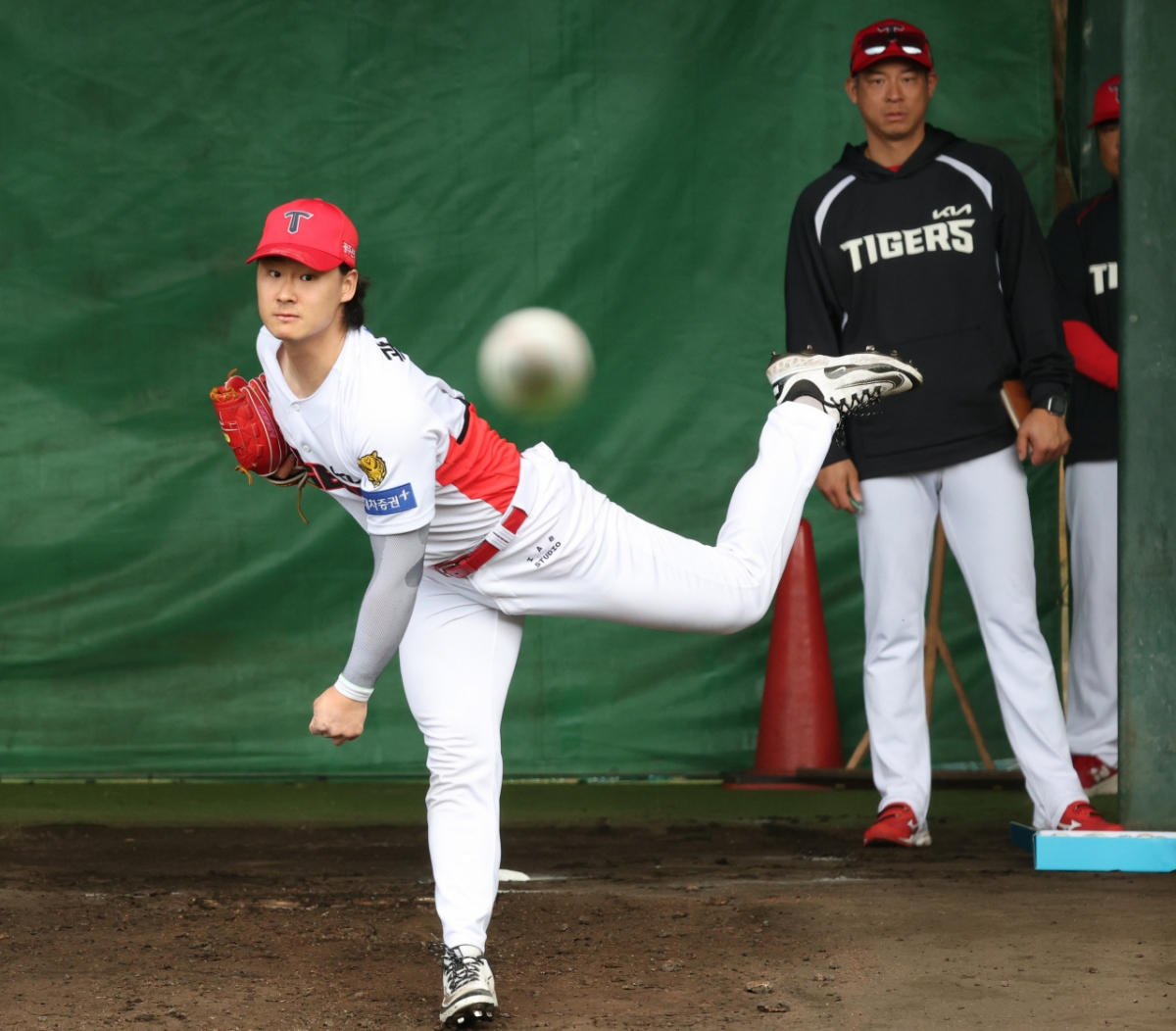 KIA 타이거즈가 25일 일본 오키나와현 킨의 킨타운 베이스볼 스타디움에서 스프링캠프 일정을 진행했다.