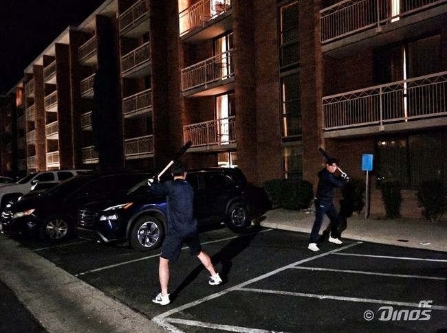 이호준 감독이 거포 유망주로 기대하고 있는 오장한이다. 본인 역시도 이제는 더할나위 없는 기회를 잡기 위해 정식 훈련이 끝난 뒤 스프링캠프 숙소에서도 훈련을 이어갔다. 불꺼진 주차장에서 같은 우투좌타 외야수 경쟁자인 박시원과 함께 스윙 연습을 이어갔다.